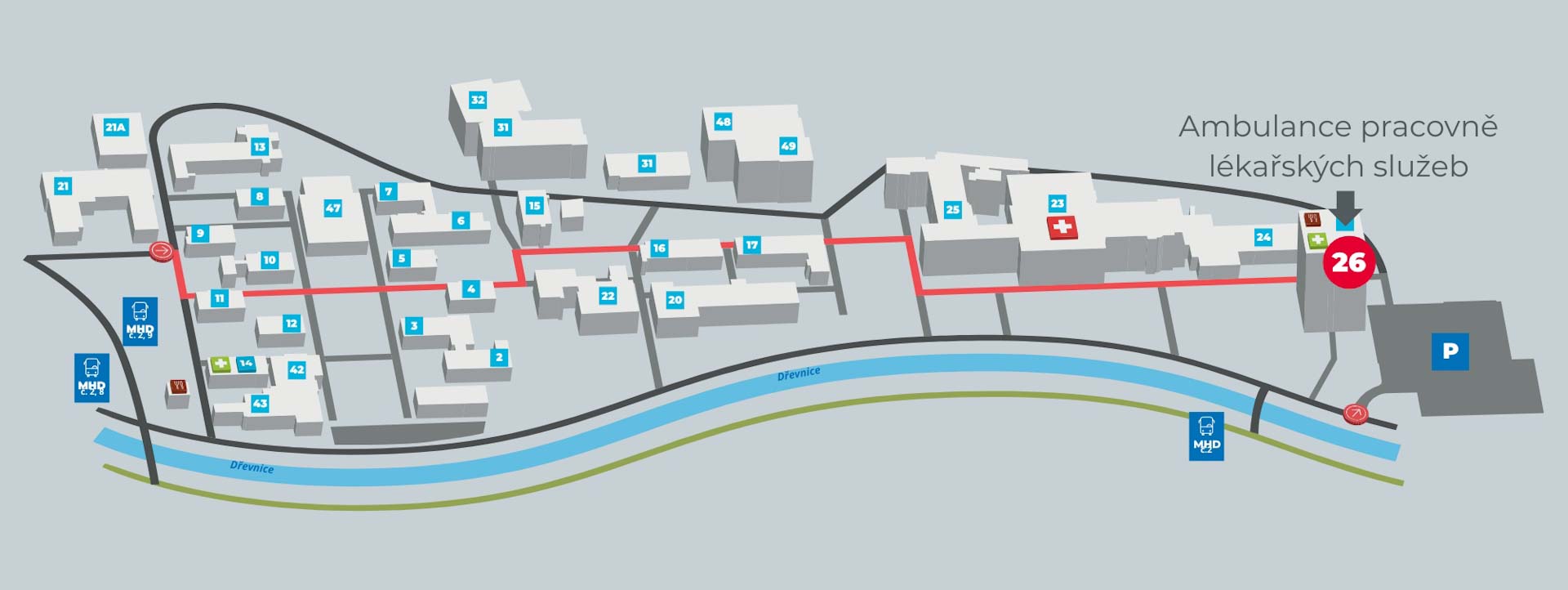 Závodní lékařky se nacházejí v budově č. 26 v 5. patře.